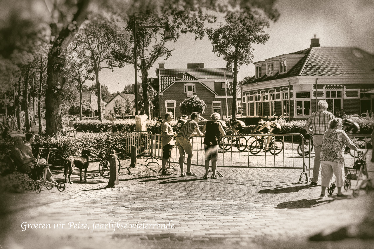 In vroeger tijden stuurde je als je op vakantie ging ansichtkaarten naar de thuisblijvers. Die traditie is vervangen door de berichten die we elkaar via Facebook en Instagram doen toekomen. Het principe is hetzelfde. Een foto met een begeleidend tekstje over het weer, de accommodatie en de enerverende momenten die je beleeft. Zoals bijvoorbeeld een wielerronde. Beelden zeggen daarbij – net als vroeger- nog steeds meer dan woorden. Vandaar dat ik als fotograaf de vrijheid heb genomen een hedendaags beeld te bewerken tot een nostalgische afbeelding.