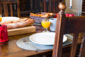 Het tweekleurige blad van de Eleagnus is mooi te gebruiken om een schaal te bekleden.