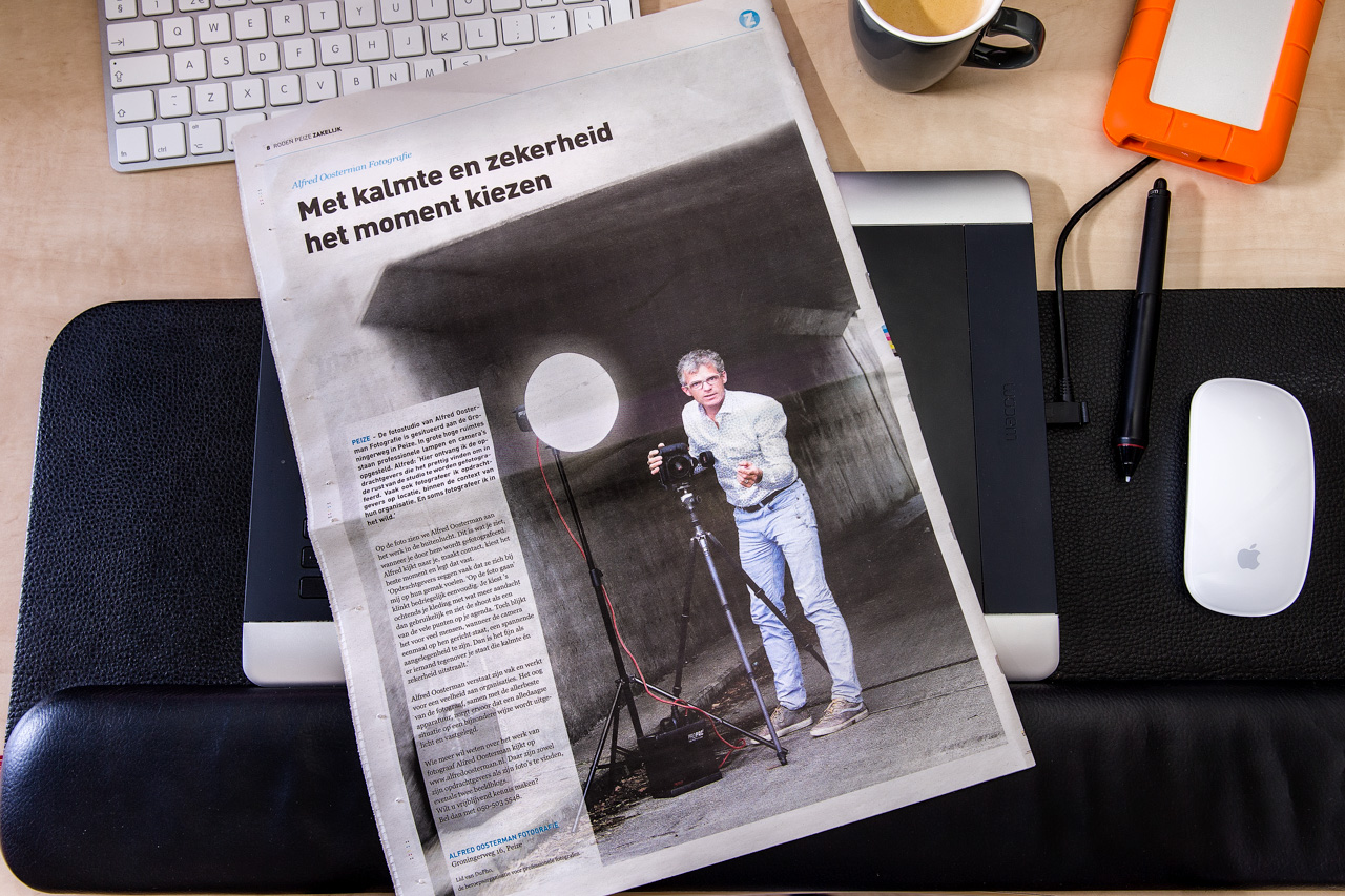 Kopje koffie, even de krant lezen en tijdens het bladeren ineens jezelf zien. Ik wist natuurlijk dat het artikel een dezer dagen in De Krant geplaatst zou worden, maar toch was het even een gek moment. Zo is het dus om jezelf afgebeeld te zien – dit gevoel kennen veel van mijn opdrachtgevers voor wie ik de (zakelijke) portretten mag verzorgen. Mijn tweede gedachte na het zien van dit redactionele artikel ging uit naar de vormgeving ervan. Mooi gedaan door de grafisch ontwerper van De Krant.