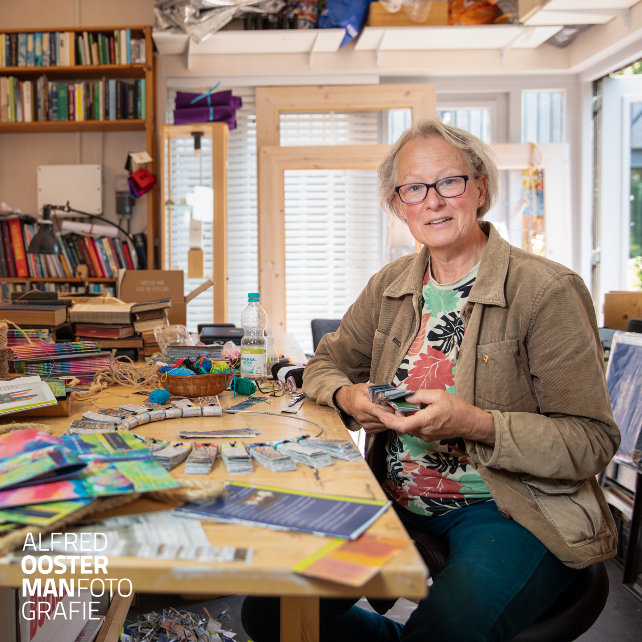 Een portretfoto van Wilhelmina van Beek – Zoutewelle. Voor de promotie van de Open Atelier Route Noordenveld heb ik een aantal kunstenaars gefotografeerd. Dat doe ik graag, de kleurrrijkheid van kunstenaars en daarbij hun visie op wereld. Het is inspirerend. Zo ook bij Wilhelmina. In Peize heeft ze een atelier waar iedere vierkante centimeter wordt gebruikt. Ze maakt reliëfs en objecten van papier en karton. Het lijkt monnikenwerk dat met precisie wordt uitgevoerd. Deze week moest ik nog even bij haar langs en hoewel de atelierroute is inmiddels voorbij is, vind ik het toch de moeite waard dit nog te laten zien. Wil je meer van haar weten? Ga er maar eens lekker voor zitten. https://wilhelminazoutewelle.nl